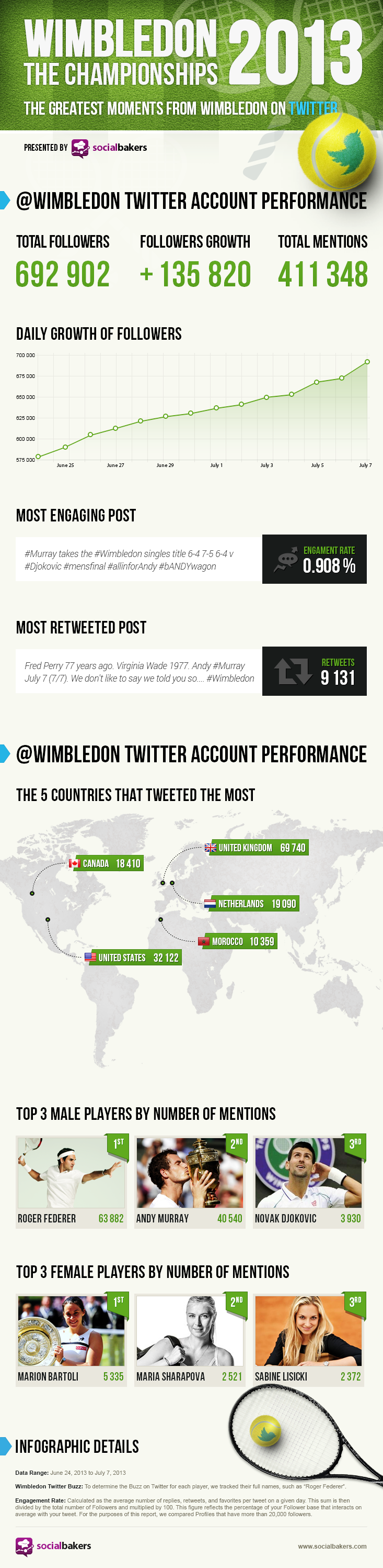 Με αφορμή αυτό το γεγονός το site Social Bakers δημιούργησε το παρακάτω infographic. Όπως αναμενόταν, Μεγάλη Βρετανία, Andy Murray και Roger Federer κυριάρχησαν στο Twitter.