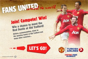Για την υποστήριξη της χορηγικής της συμφωνίας με την Manchester United, η Turkish Airlines πραγματοποίησε την καμπάνια/διαγωνισμό “Fans United” μέσω της επίσημης σελίδας της στο Facebook. Μέσω αυτού του διαγωνισμού, 19 φίλοι της United θα ταξίδευαν στο Manchester για να γνωρίσουν από κοντά τα ινδάλματά τους.