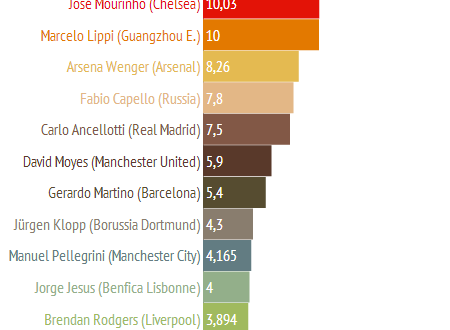 - Οι συνολικές αποδοχές των 30 πιο ακριβοπληρωμένων προπονητών για το 2013 μειώθηκαν κατά 12% σε σχέση με πέρυσι (από 160,8 εκατομμύρια Ευρώ το 2012 σε 141,7 εκατομμύρια Ευρώ το 2013).
