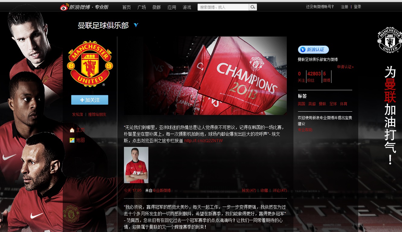 Η Manchester United μέχρι τώρα δεν είχε παρουσία στο Twitter. Αυτό όμως άλλαξε σήμερα καθώς όπως ανακοινώθηκε, η ομάδα του Manchester έχει πλέον επίσημη παρουσία τόσο στο  Twitter και στο Sina Weibo!