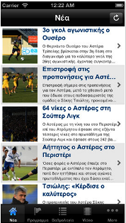 Το τελευταίο χρονικό διάστημα φαίνεται ότι οι Ελληνικές ΠΑΕ έχουν στρέψει την προσοχή τους στην βελτιστοποίηση της διαδικτυακής τους παρουσίας. Έτσι μετά την ΠΑΕ ΠΑΟΚ που ανακοίνωσε τις επίσημες εφαρμογές για Android και για iOS συσκευές, και ο Αστέρας Τρίπολης έρχεται να προστεθεί στις ομάδες που έχουν πλέον επίσημη εφαρμογή για iOS συσκευές. Την εφαρμογή επιμελήθηκε η easyinternet.gr. Μάλιστα σε σύντομο χρονικό διάστημα, η ΠΑΕ αναμένεται να ανακοινώσει και την δημιουργία επίσημης εφαρμογής και για κινητά τηλέφωνα με λειτουργικό Android.