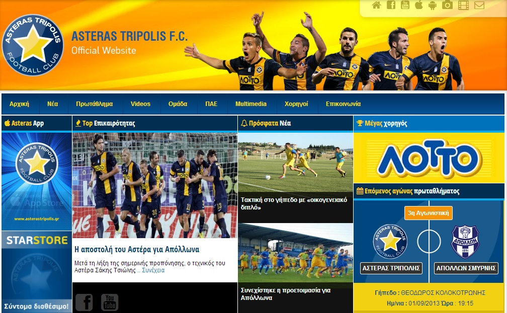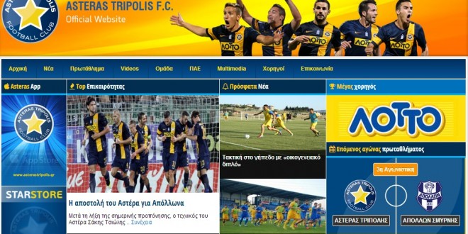 Επίσης εκτός από την iOS εφαρμογή, η ομάδα της Τρίπολης ανανέωσε και το επίσημο website της. Μπορούμε να πούμε ότι το νέο “διαδικτυακό σπίτι” του Αστέρα είναι πιο φιλικό για τον χρήστη, πιο visual ενώ τα social media κανάλια της ομάδας και οι χορηγοί της ομάδας βρίσκονται σε πρώτο πλάνο. Την ιστοσελίδα επιμελήθηκε η εταιρία LIME FRAME.