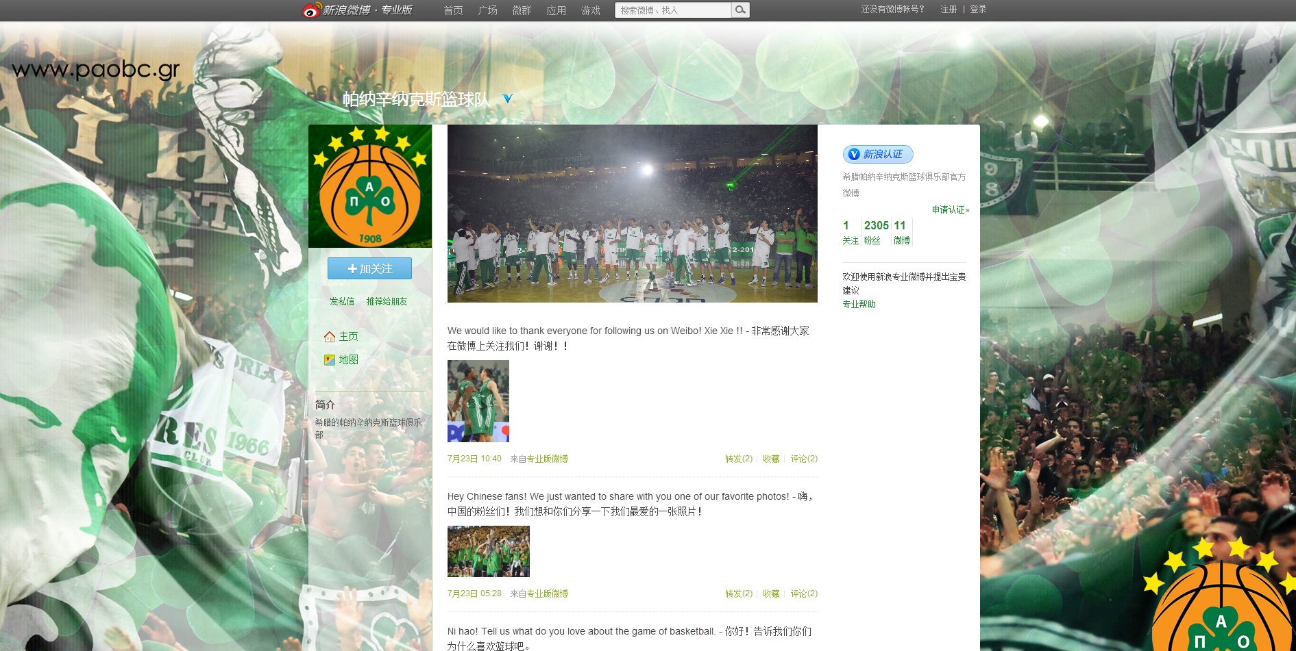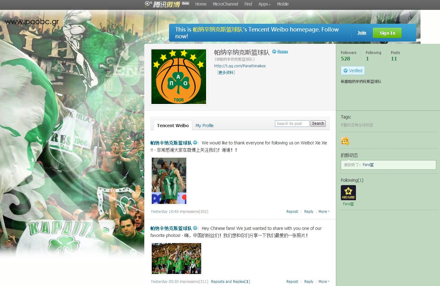 Μπορείτε να βρείτε τον λογαριασμό του Παναθηναϊκού στο Weibo εδώ, ενώ αυτόν του Tencent Weibo εδώ.