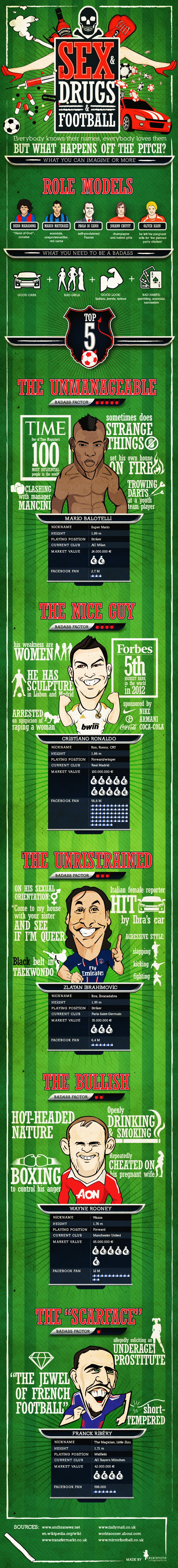 Ένα διαφορετικό infographic παρουσιάζουμε σήμερα. Σε αυτό και σύμφωνα με την Avalanche infographics, παρουσιάζονται τα “κακά” που παγκόσμιου ποδοσφαίρου. Balotelli, Christiano Ronaldo, Ibrahimovic, Rooney και Ribery έχουν την τιμητική τους. Δείτε ποιες είναι οι κακές τους συνήθειες, ποια είναι τα πρότυπά τους και ποιος βρίσκεται στην πρώτη θέση αυτής της λίστας.