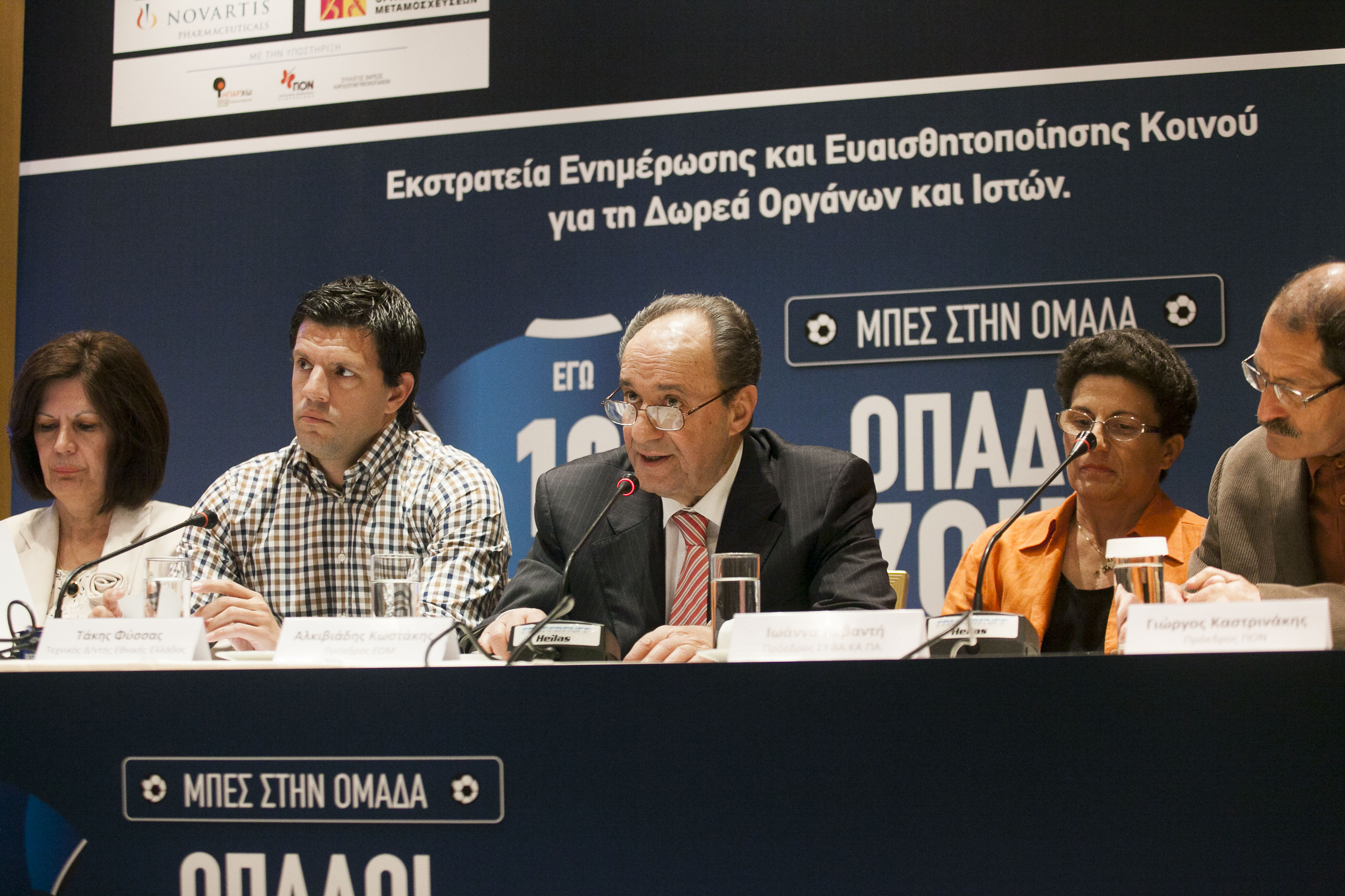 Τέλος, ο κ. Γιώργος Καστρινάκης, Πρόεδρος της Πανελλήνιας Ομοσπονδίας Νεφροπαθών (ΠΟΝ), τόνισε πως: «Ιδιαίτερα σήμερα, υπάρχει επιτακτική ανάγκη για την ενημέρωση όλων των πολιτών γύρω από αυτό το σημαντικό θέμα. Στα πλαίσια μιας πανεθνικής προσπάθειας για τη διάδοση της ιδέας Δωρεάς Ιστών & Οργάνων Σώματος, ειδικά ο χώρος του αθλητισμού είναι σε θέση να διαδραματίσει καθοριστικό ρόλο, αφού πολλοί από τους πρωταγωνιστές του αποτελούν πρότυπα για την ελληνική κοινωνία και ιδιαίτερα για την νεολαία».