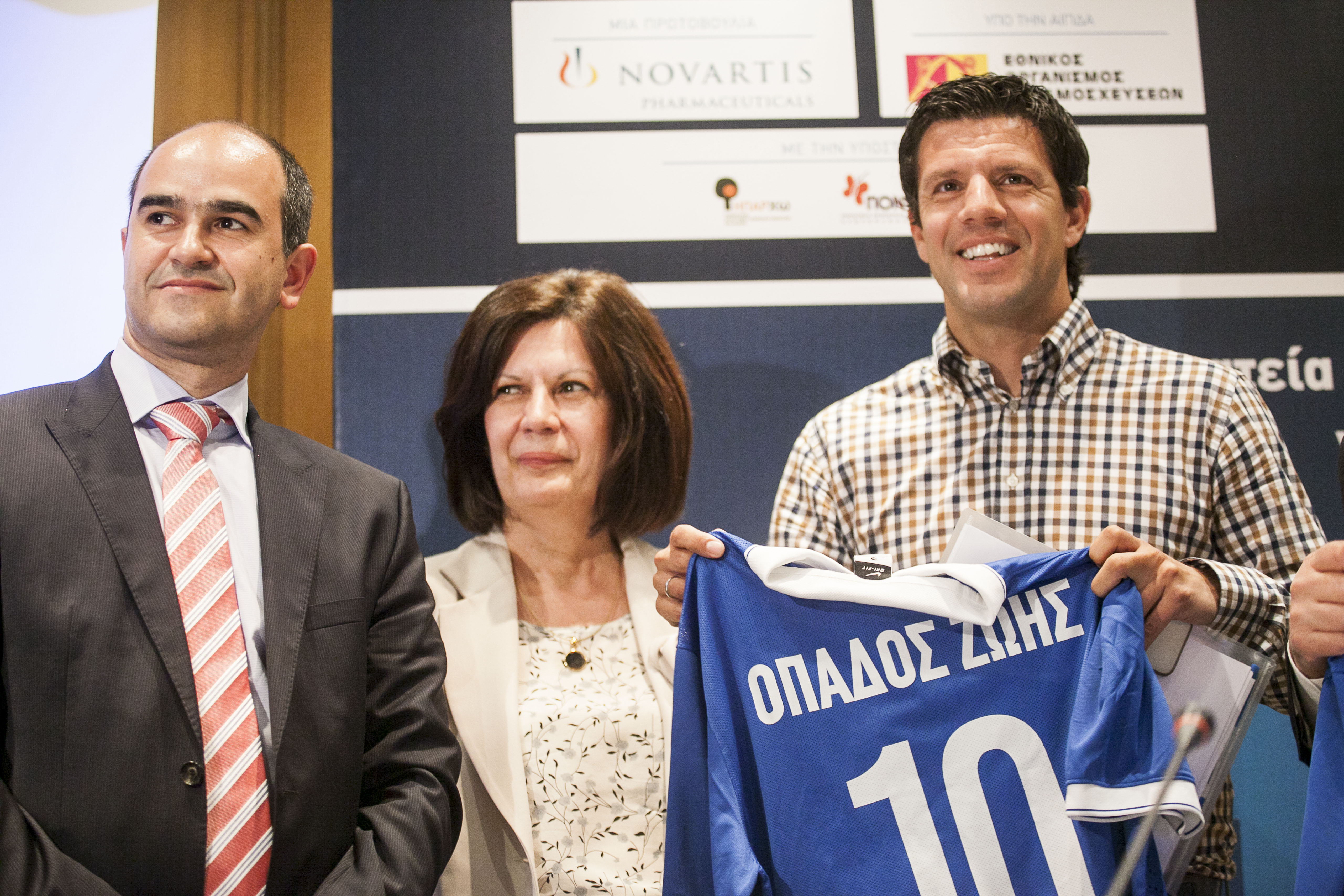 H Novartis Hellas ανακοίνωσε τη συνεργασία της με την Ελληνική Ποδοσφαιρική Ομοσπονδία και την Εθνική Ομάδα Ποδοσφαίρου για την πραγματοποίηση Εκστρατείας Ενημέρωσης και Ευαισθητοποίησης του κοινού για τη Δωρεά Οργάνων και Ιστών, με τίτλο: «Οπαδοί Ζωής». Η εκστρατεία τελεί υπό την αιγίδα του Εθνικού Οργανισμού Μεταμοσχεύσεων (ΕΟΜ) και τη στήριξη του Σωματείου Ηπατομεταμοσχευθέντων Ελλάδος (ΗΠΑρxω), της Πανελλήνιας Ομοσπονδίας Νεφροπαθών (ΠΟΝ) και του Συλλόγου Βαρέως Καρδιοπνευμονοπαθών Ασθενών (ΣΥ.ΒΑ.ΚΑ.ΠΑ.).