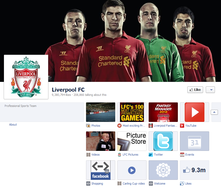 Ο σύλλογος χρησιμοποίησε την σελίδα του στο Facebook για να προβάλει τις εικόνες της νέας φανέλας καθώς και τα σχετικά link που οδηγούν στο online κατάστημα. Η σελίδα της Liverpool στο Facebook έχει κάτι λιγότερο από 10 εκατομμύρια φίλους έτσι ο σύλλογος  διασφάλισε ότι το μήνυμα του θα φτάσει σε ένα αρκετά μεγάλο κοινό. Σε αυτό βοήθησε και η ώρα ανακοίνωσης καθώς το μήνυμα/post του συλλόγου στο Facebook έγινε τα μεσάνυχτα. Κατά αυτόν τον τρόπο αρκετοί φίλοι της ομάδας μπόρεσαν να διαβάσουν το σχετικό post όταν τσέκαραν το Facebook το επόμενο πρωί.