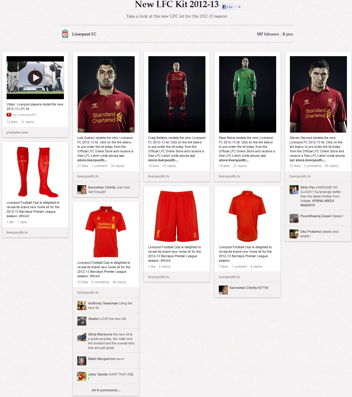 Το Pinterest, είναι μια αρκετά “οπτική” πλατφόρμα και η Liverpool την χρησιμοποίησε ανάλογα καθώς ανέβασε στον επίσημο λογαριασμό της, φωτογραφίες καθώς και το βίντεο της καμπάνιας. Οι φίλοι της ομάδας μπορούν να δουν αρκετές λεπτομέρειες από την νέα φανέλα μέσω των HD  φωτογραφιών αλλά και να τις μοιραστούν στα διάφορα social media.