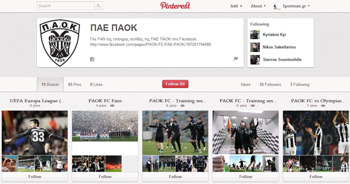 Σχόλιο: Εάν κάποιος άλλος αθλητικός οργανισμός έχει λογαριασμό στο Pinterest και έχει διαφύγει της προσοχής μας, μπορείτε να μας ενημερώσετε σχετικά.