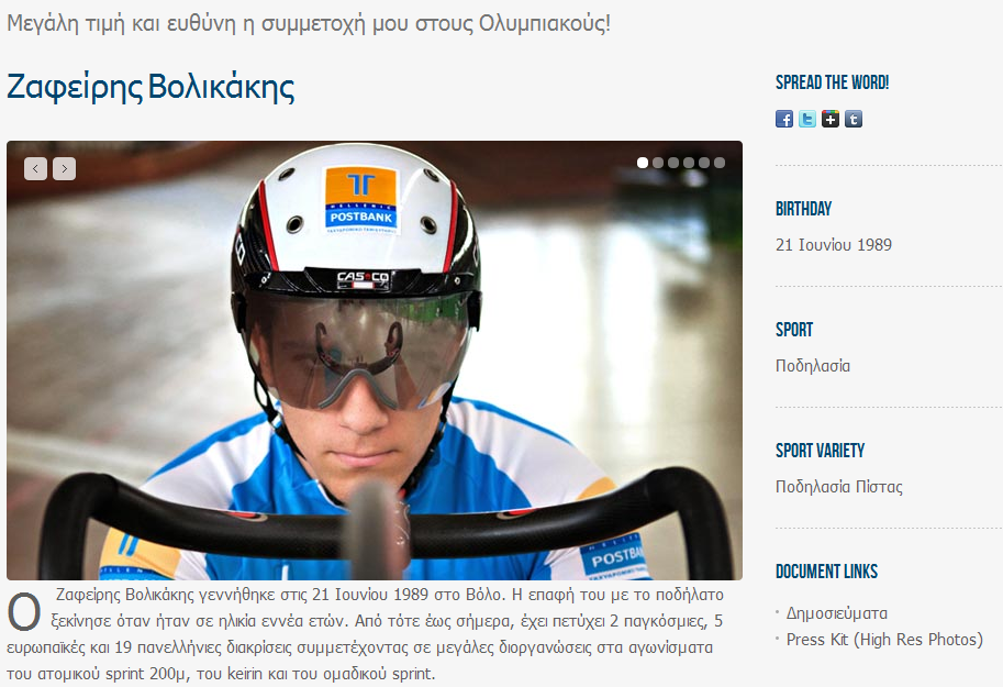 • Links που συνδέουν το κοινό με τις προσωπικές σελίδες των αθλητών στο Facebook, Twitter, Google+ και Tumblr